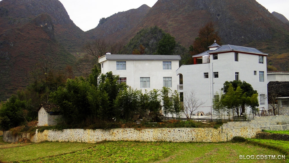 2012年12日底,我回广西乐业县甘田镇夏福村老家办事,顺便到附近的村屯走走,看到乡亲们的居住条件都有不同程度的改善,较富有的人家起的新居,可与和城里的别墅相比美。可惜天气不好,图的效果不理想。