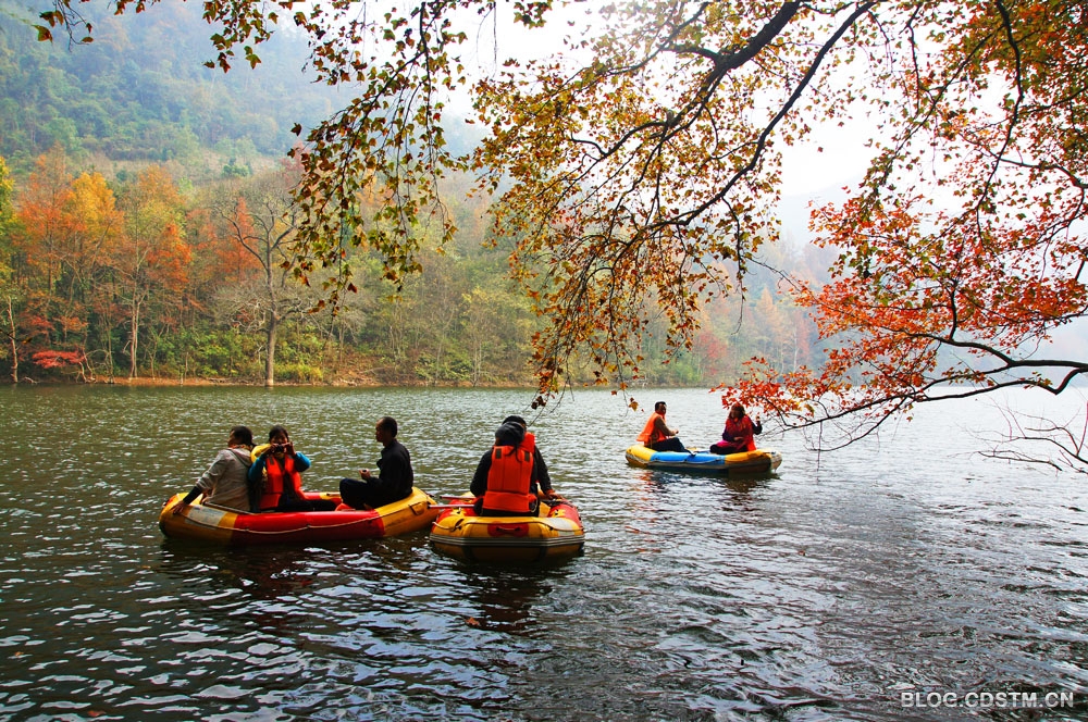 轻舟缓缓水中行, 湖光枫色竞缤纷