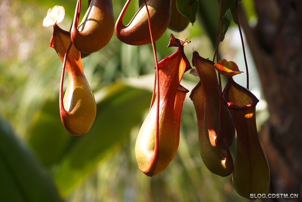 猪笼草是猪笼草属全体物种的总称。属于热带食虫植物,原产地主要为旧大陆热带地区。其拥有一个独特的吸取营养的器官——捕虫笼,捕虫笼呈圆筒形,下半部稍膨大,笼口上具有盖子,因其形状像猪笼而得名。