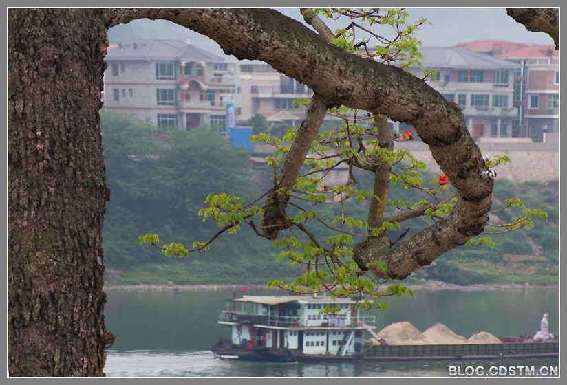 尽管这株老木棉历尽劫波,但仍顽强在挺立在邕江边,穿梭来往的航船仍在接受它的”检阅“。目睹它顽强的生命力,我不禁对之肃然起敬 ,并写再一首诗以纪之——