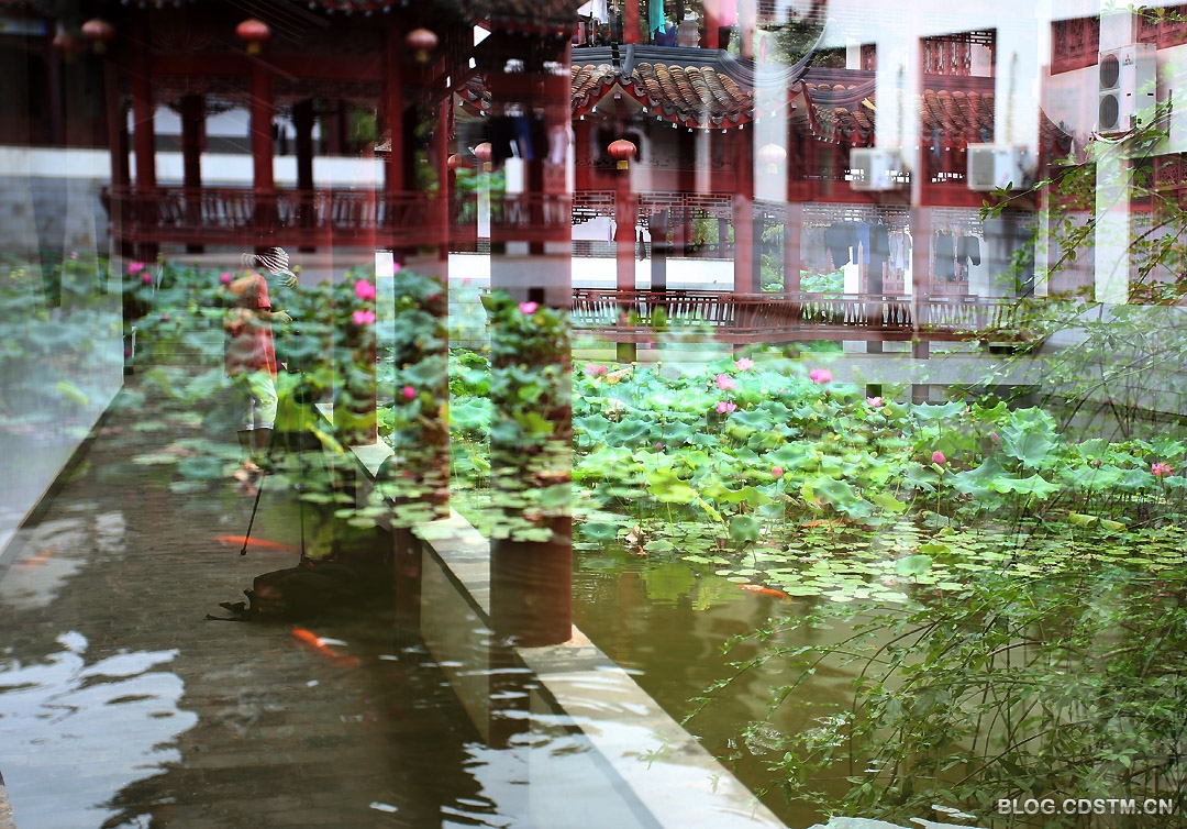 近日利用双休日到公园拍片,试拍几张多重曝光图,都是手持拍照。刚开始学习,还在摸索之中。分别用左右(图1、2、4)、上下(图3)移动法拍摄。用此法拍出来的图,在光圈、速度、感光度都相同的情况在,比不用此法拍的图都出现过曝问题,但后期压一下曲线就可克服。 多重曝光法可随心所欲,想要什么效果都可尝试。如图1可得到锦鲤游上墙,图2一盆莲变两盆,图三则使本来在水中的莲移到岸上去。