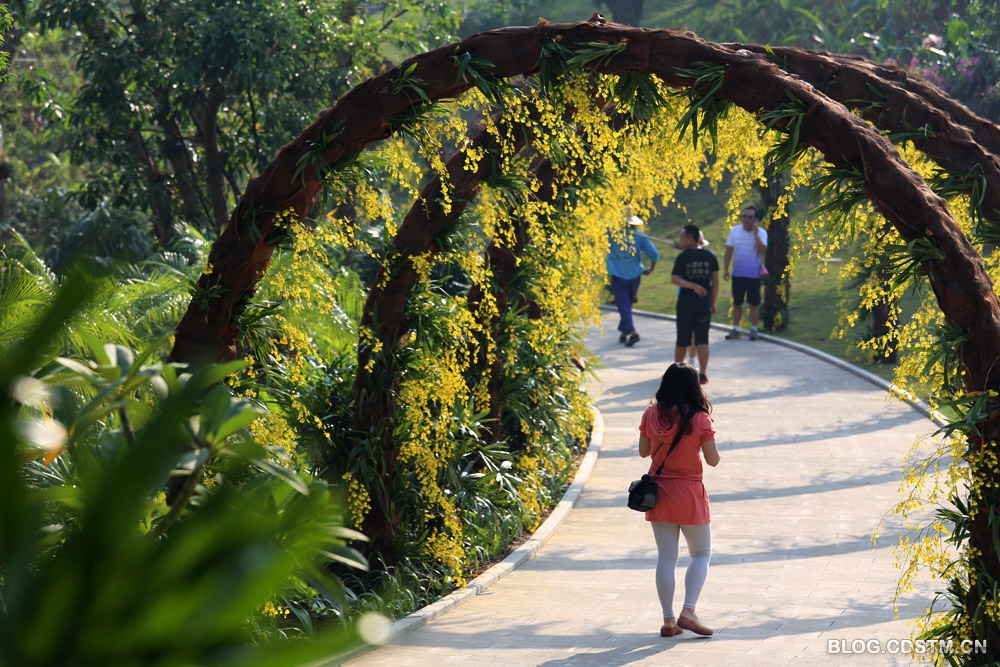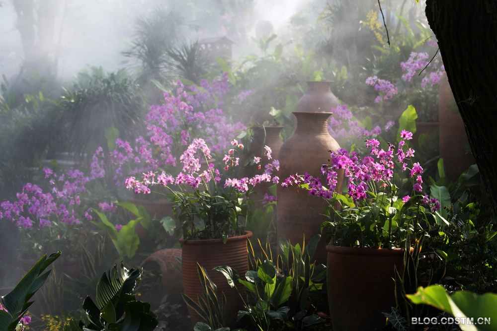 得知青秀山新建兰园景区的消息,趁今天天气好,上午8点多就直奔离北门502米的兰园。兰园虽尚未完工,园中的兰湖也尚在待建中,但已初具规模。据向园林职工了解,园中已种有兰花380多种。其中有不少品种种在树干(枝)上,兰花的气根有固碳作用,可吸收空气中的碳作为营养。兰园每隔1小时喷雾1次,每次约10分钟。喷雾时园中如梦如幻,如诗如画,宛若仙境。