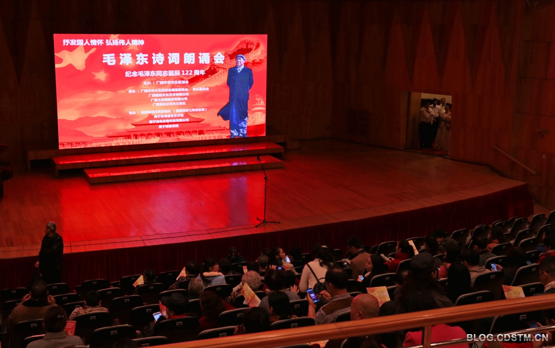 12月26日是毛主席诞辰122周年。广西中华文化促进会在广西音乐厅举办主席诗词朗诵会,纪念这位伟人。