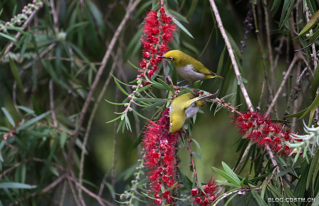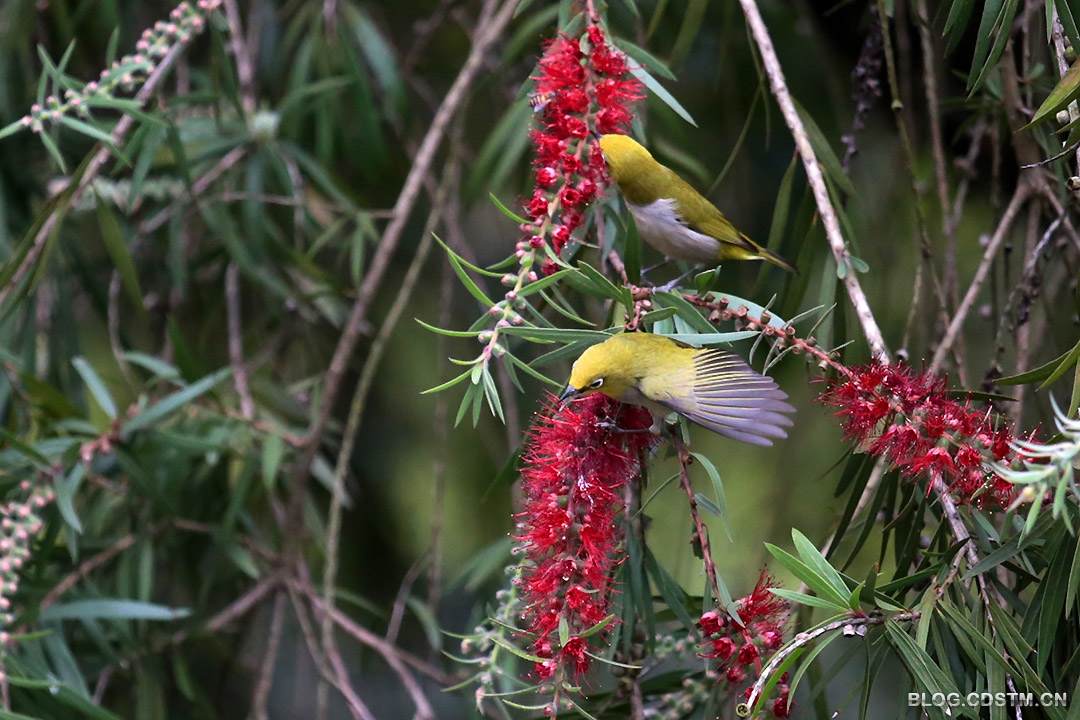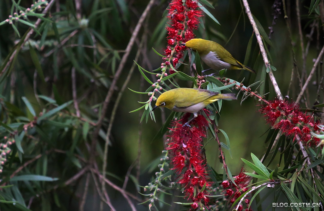 广西大学生态环境好,有多种鸟类到那里活动。每天都有不少喜欢拍鸟的摄友聚集到那里,长枪短炮齐上阵。我只有200毫米的小小白镜头,拍鸟力不从心,但有机会时,还是要去拍一拍。2月5日上午,南宁天气好转,我随2位摄友到广西大学拍到3种鸟。这一组上的是绣眼,一种个头很小的鸟。幸运的是,竟然有2只绣眼同时在枝头出现。
