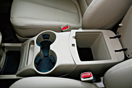14.前排中央扶手处设置了杯架、烟灰缸和储物盒
