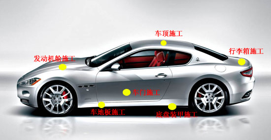 车门→行李厢→地板→前翼子板→发动机舱(六缸发动机不建议安装)→车顶(带天窗车型不建议安装)