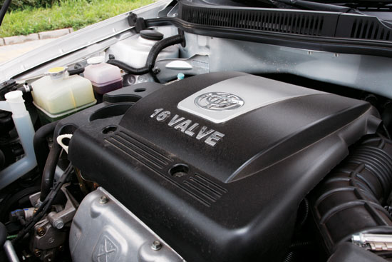 这辆1.6AT豪华型的骏捷FRV采用了1.6 L排量的三菱4G18S发动机,虽然它在国内已经再熟悉不过,没有采用多少先进的技术,但它的可靠性、经济性对于普通家庭用车,的确是非常不错的亮点。行驶过程中,车内噪声还是比较明显,这可能与发动机盖没有装配隔音棉有关,并且由于整车外覆盖件的缝隙过大,各种噪声得以借隙而入。与发动机配合的是三菱原装4挡手自一体变速器,在加速过程中换挡瞬间有比较明显的顿挫感。推测其中原因,大概是发动机的喷油参数标定偏向于经济性和排放性。在大力踩下油门后,变速器得到降挡信号,但同时发动机并没有及时加大喷油量使转速迅速跟进,造成发动机转速比变速器降挡后的需求转速小很多,造成瞬间顿挫。动力控制系统在发动机和自动变速器的匹配上稍有不和谐,可以在日后通过软件升级修正,当然在动力性和经济性之间选择省油,也是无可厚非的,毕竟这是一款生于汽油涨价时代的家用轿车。