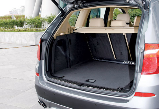 出于定位考虑,新X3肯定会在尺寸上有所顾忌,但稍微“长大”一点也是必须的。较上一代,新X3 的长、宽、高分别增加了79 mm、28 mm、14 mm,而最终的4 648 mm车长以及2 810 mm轴距与奥迪Q5极其接近,同时也小胜于奔驰GLK。操控性无疑是宝马的强项,但在多功能性方面X家族却体现出了十足的固执,虽然新X3的后排座椅靠背可按4:2:4比例折叠, 行李厢可提供550~1 600 L的空间,但整体乏善可陈,没能表现出对手奥迪Q5那般积极进取的学习态度来。