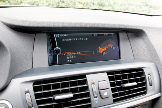 虽然宝马的产品总是有着诸多诱人的优点,但有时那种偏执狂般的驾驶特点并不是我能接受的,也许全世界像我这样懒散的人不在少数,因此聪明的宝马就以动态控制系统作为了应对我们这些懒人的办法。自从7系之后,动态控制系统开始在宝马产品中大行其道起来,不过这项功能在X家族中却是首次应用。通过中央控制台上的按钮,驾驶者可以在“正常”、“运动”和“运动 +”模式之间切换,每种模式除减振特性变化外,油门动作、发动机响应、助力转向特征曲线、DSC的介入程度以及变速器的换挡动态均有所改变,车辆因此也表现出不同的驾驶风格。