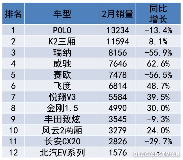 2月POLO仍然稳坐小型车榜首,但是同比下滑了13.4%。
