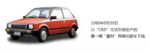 1986年9月30日,以“ CKD ”方式引进生产的第一辆夏利下线,并且创造了“当年签约、当年引进、当年投产、当年受益”的奇迹!是国内最早进入家庭的主力车型之一。与中国改革的进程一起飞跃,夏利一直走着一条自主生产、自主研发更新、创中国人自有轿车品牌的自主道路,到今天,夏利已经成为年产15万辆整车、20万台发动机,社会保有量高达70万辆,并在18年中始终保持经济型轿车销量第一的行业领头人。2002年,夏利轿车出口美国,首开中国轿车出口先河。2004年,夏利成为第一个产量过百万的民族轿车品牌。