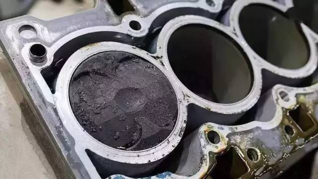 活塞顶部可以算是最直接产生积碳的位置,在燃烧室内,汽油燃烧不彻底所留下的积碳自然是最多的堆积在活塞顶部的位置,当然这里清理起来也是最难的,当然了再难也是有办法,后文我们会继续提到。