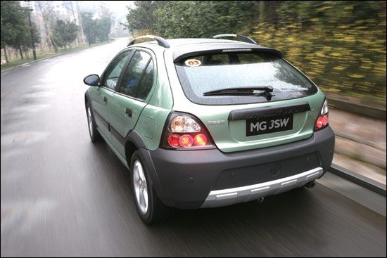 此次在杭州,我们有幸率先试驾了这款配备CVT变速器的1.8 L MG 3SW。初次坐在MG 3SW的驾驶席上,自己很快被车辆所散发出来的运动感觉以及类似于SUV车型一般的良好视野所吸引。除了桶形座椅能够保障包裹性和舒适性之外,较高的油门和制动踏板,我们很快能够找到原汁原味的英伦气息。启动发动机,对于噪声和振动的处理虽然比不上日系高级轿车那样周到,但也算得上相当不错了。在首先开始的高速测试过程中,我们很快体会到1.8 L发动机在这样一辆经济型轿车身上散发出的良好爆发力。和很多以动力性能著称的车型相同,MG 3SW属于那种“一踩就有”的类型,起步阶段有非常明显的推背感,CVT变速器没有任何迟滞,整个加速过程也显得相当顺畅。和之前试驾过的经济型轿车不同,MG 3SW的油门踏板行程要明显长出了一些,如果您想获得类似的加速感,就必须动作稍微大一些。车速很快攀升到120 km/h,和很多类似的小排量汽车不同,MG 3SW维持这样的车速,发动机的转速始终维持在2 400 r/min以下,除了能够体现良好动力性能之外,也可以起到节省燃油并减少噪声的目的。在路面平整的情况下,MG 3SW以120 km/h的时速行驶,方向盘的稳定性相当不错。不足之处在于,在高速行驶过程中,车辆的噪声处理还有一定提升空间。