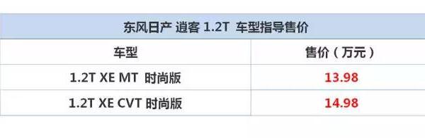 2016-01-11 16:34:132016年1月8日,东风日产的小排量涡轮增压发动机的首款车型——逍客1.2T车型正式上市此次逍客1.2T车型共推出两款,其中搭载手动档的车型售价为13.98万元,CVT车型售价为14.98万元。