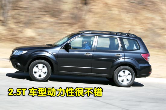 我们首先试驾的是2.5T自动挡车型,尽管该车有着超过1.5 t的体重,但是斯巴鲁这款2.5 L涡轮增压发动机所具备的320 N•m最大扭矩用来将其推动,可以说是一件相当轻松的事情。而与之相配合的4挡手自一体变速器也具备了相当的反应能力,这使得驾驶新森林人行驶在多弯的山间变得相当轻松、畅快。您只需轻轻踏下油门踏板,车速尽管不算陡然提升,但是能够在相当短的时间里将车速顺畅地展现出来。每次通过急弯时,制动、转向、提速,所有的动作都显得相当轻松,斯巴鲁驾驶起来一贯的轻便感得到了严格的坚持,乘员在尽情享受户外美景的同时,驾驶车辆绝对不会变成一种负担。