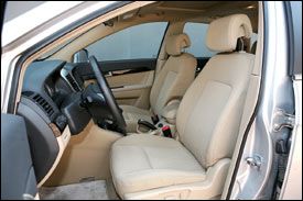 相对于科帕奇略显奔放的空间布置,狮跑的绝对强项在于空间利用的精巧程度和一些独具匠心的特别设计。虽然整体尺寸上要比对手稍显劣势,但在乘坐的舒适性和实用的便利性方面也是相当不错的。狮跑的轴距仅为2 630 mm,与很多同级别竞争对手相比确实不占优势,但是经过独特的空间设计,您在任何一个座位上都不会因为腿部空间不足而感到局促。该车的第二排座椅除了可以像科帕奇那样6∶4向前放平之外,还可以向后倾斜一定角度,从而为后排乘客提供了更为理想的乘坐舒适感。