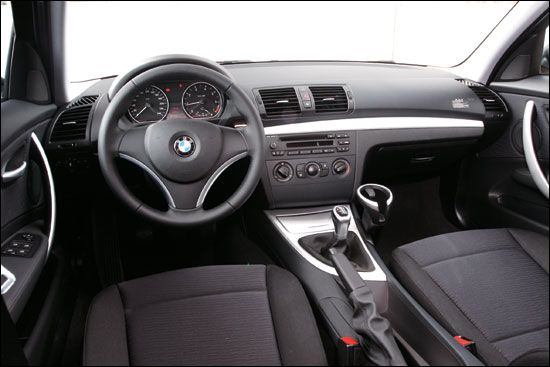 同样有所取舍的还体现在各种装备上,对于经常要面临极限状态的运动型轿车来讲,安全装备当然是重中之重的,宝马1系在所推出的三款车型均配备了DCS、DTC以及正面、侧面安全气囊等,水平绝不逊色于5系等更高级别的车型。130i自动挡车型更是配备了拨片式换挡结构,让您可以充分享受与车辆直接互联的畅快。不足之处在于,售价不足30万元的120i在舒适性装备方面有所牺牲。只有手动空调和单碟CD,驾驶系座椅只能手动调节,所有这些再次向我们证明,享受宝马1系的重点应该在手握方向盘的时候,并不是坐在一边静享舒适。