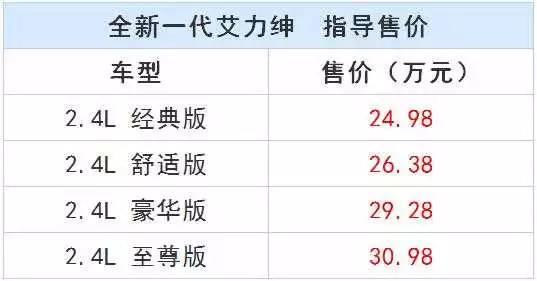2016年1月9日,东风本田宣布全新一代艾力绅在国内正式上市。新车此次推出2.4L一种排量共4款车型,售价区间为24.98万~30.98万元。详细售价请见下表:
