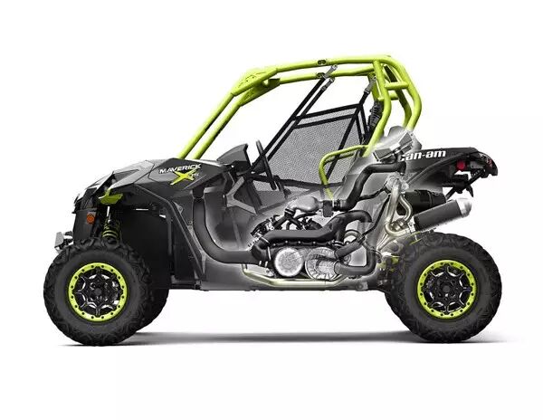 Rotax 1000R发动机加上业内首款原厂装配的涡轮增压器,Maverick X ds的马力可以达到89kW。电子控制的排气阀可以自动调节增压大小,在各种路况下都能达到最佳动力。涡轮增压器配备了一个带有风扇的中冷机,在极端条件下,也能够冷却进入发动机的空气。为了匹配发动机的增压,还加配了全新的低压锻造活塞,全新高性能喷油器提高了燃油输送率,使得发动机在最佳的空气-燃油混合率下提升性能。