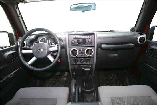 4门版牧马人拥有2 947 mm的超长轴距,虽然牺牲了一部分通过性能,却获得了更加宽敞的前后排乘坐空间,放倒后排座椅后,储物空间可扩展至2 322 L。FJ酷路泽的6∶4可分割式后排座椅则提供了多样化的空间布局方式,完全放倒后也是一个相当可观的储物空间。同为21世纪的最新款产品,二者在时尚配置上都下了不少功夫,牧马人拥有耐磨、耐脏的YES Essentials高级织物座椅、外接MP3播放器接口及6扬声器设计,FJ酷路泽武装上了防水面料座椅、AUX接口和9个扬声器,其中还包括一个低音扬声器。比较新颖的是牧马人地板上开辟了排水塞,允许你用水管清理车内地板。而FJ酷路泽中控台上的大按钮,戴着手套操作也很方便。这样的设计方式,明显是只有越野车才能拥有的奇思妙想。