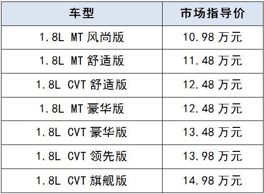 MT市场指导价:11.48万元;CVT市场指导价:12.48万元