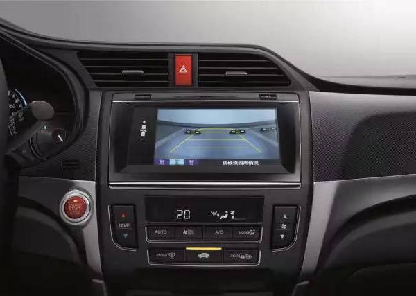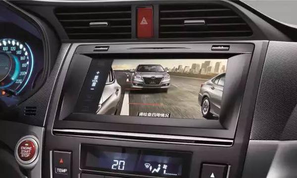 倒车影像系统采用了可随向移动的辅助线,并且有三种视角,扩大了后方的可视范围。