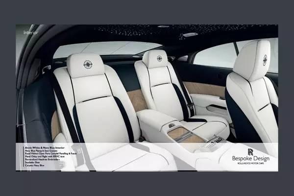 内饰方面,新车采用北极白和海军蓝搭配,辅以皇家胡桃木质装饰。另外,在座椅头枕处还有独特的星形徽章刺绣。