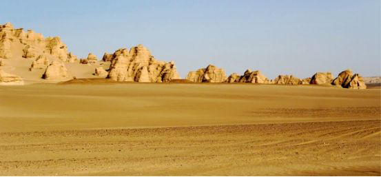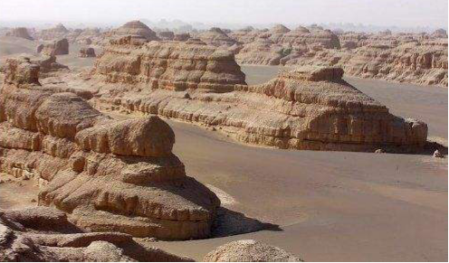 三垄沙雅丹:位于新疆巴音郭楞玉门关以西的戈壁荒漠中,由于地处三垄沙雅丹边缘,因此被称为三垄沙雅丹。三垄沙是一条横亘于罗布迫东部地区的流动沙丘带,遇到起风,沙如游蛇,在风口中行走,细沙会沿足盘旋到膝盖处。民间因此有谚语道:急走流沙慢走水。