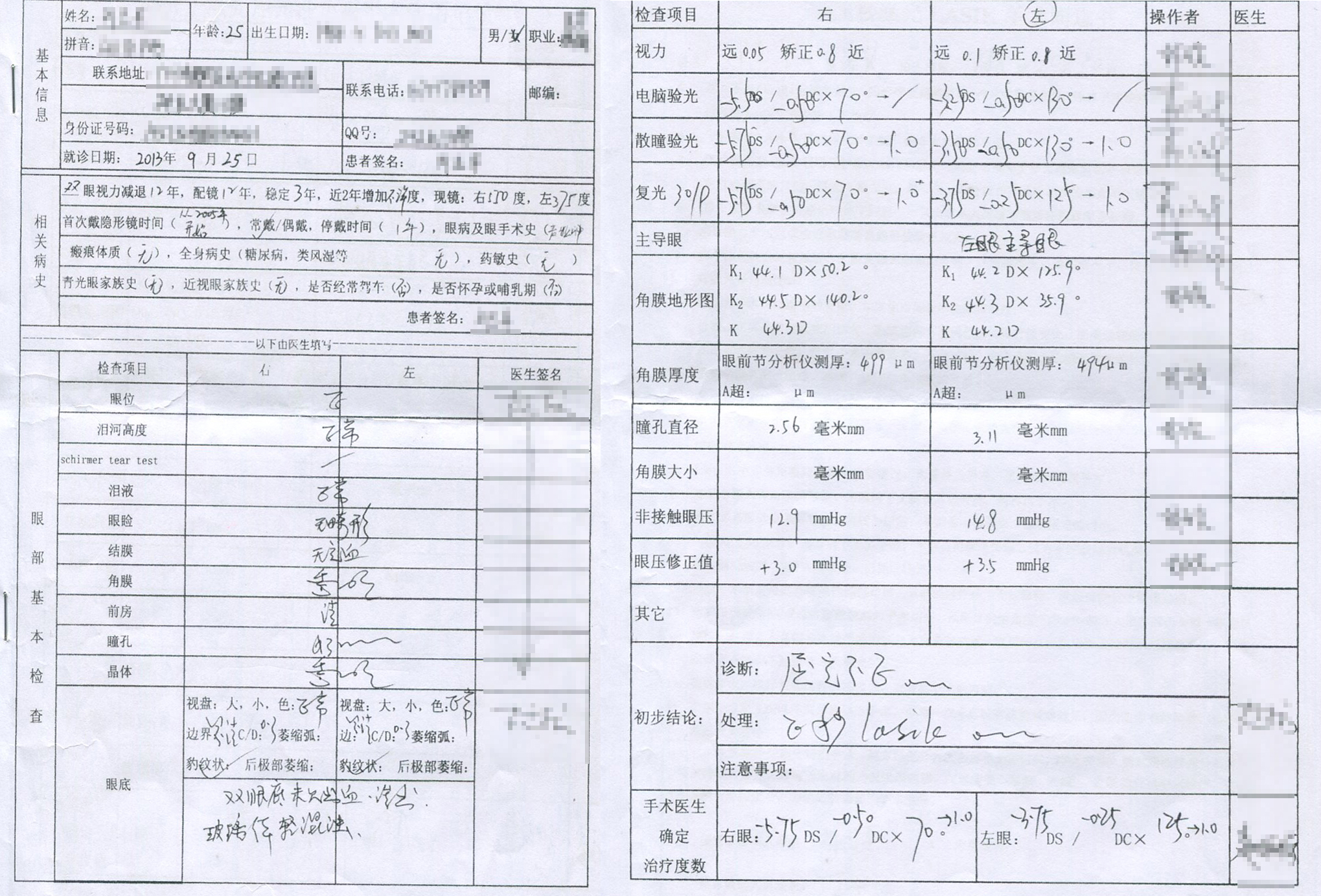 终于,在2013年做了半飞秒激光手术,现在就跟大家分享一下整个过程。