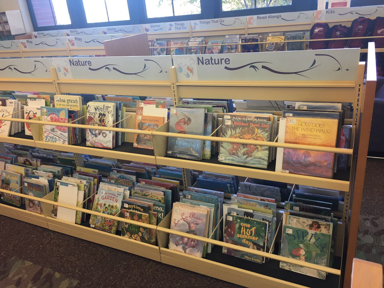 西瓜妈询问负责童书采购的图书馆工作人员,什么时候可以开始给孩子看科技方面的绘本和图书呢?工作人员的回答大出所料:从出生开始,任何时候!科技的教育不仅仅是要指定读哪一本书,上哪一门课,确定之后要掌握哪些知识点,而是从始至终一直贯穿在生活当中。比如婴幼儿时期的绘本,读教数数的绘本就算是数学教育的一部分,读关于大自然的绘本就是对物理、化学和生物在自然界中的启蒙。下图为童书区自然(nature)板块,里面包含了一年四季、天气、昆虫、园艺、天空海洋、自然现象等等。