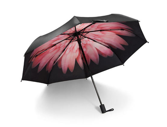 在所有遮阳防晒的努力中,不被阳光晒到才是最最有效果的。中山大学医学院给出的防晒指南就提到过防晒的ABC级——A.Avoid (不晒) >> B.Block (遮挡) >> C. Cover (擦防晒霜)。也就是说,如果非要出门,那必须打一把遮阳伞才能达到B级防晒效果。而传统的遮阳伞,只能阻隔UVB,效果和普通的玻璃窗基本相同。并不能阻隔阳光对皮肤的大部分侵害。专业的遮阳伞通常采用黑胶、银胶和彩胶涂层,也有很多高级的大牌采用PG布等高科技面料。在选择遮阳伞的时候,要考虑其UPF值,除此之外,还要考虑伞面的遮挡面积,尽量能全身都遮挡住,让全身上下都避免阳光的危害。接下来就给大家推荐几款有趣又实用的遮阳伞。