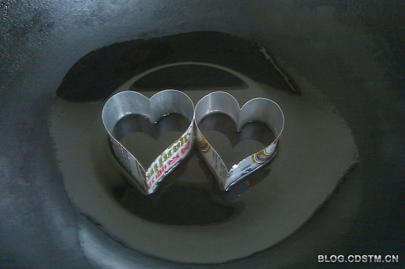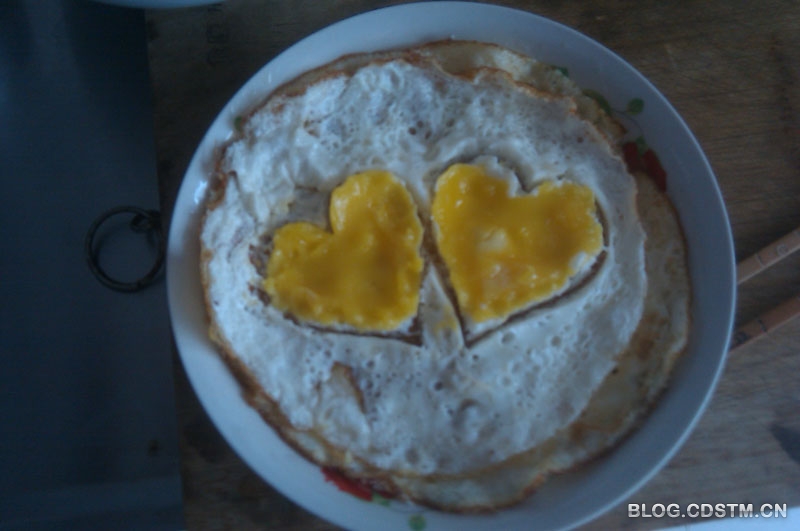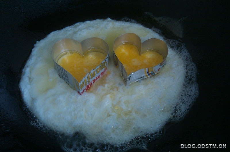7.最后将模具起掉。爱心荷包蛋大功告成。