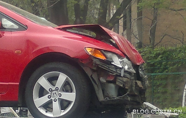 又一个车祸现场,也是刚拍的。这次有人受伤。