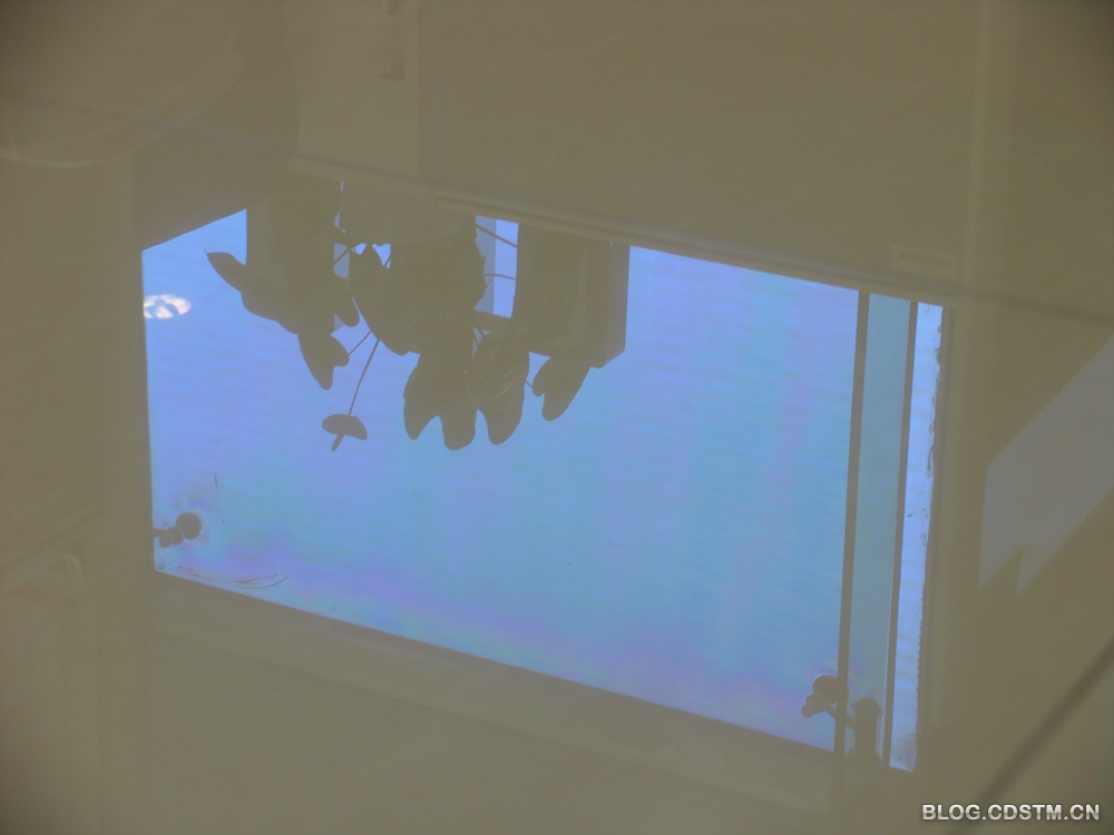看到映在地板砖上的窗户影子,竟然呈现出油膜一样的色彩。仔细观察还能看出擦