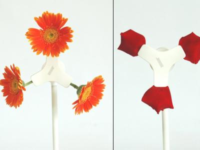 这是一款可随意更换扇叶的风扇,你可以将树叶、花瓣甚至花朵插在上面当扇叶,扇出真正的“自然风”。