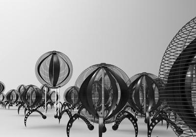 这款风扇的造型极富科幻感,像一个带有蜘蛛腿的不明飞行物,黑色的格调更让它显得酷劲十足。它拥有独特的旋转扇叶和球面形状,不仅比普通风扇更节能,而且可以让室内空气更快地流通循环。