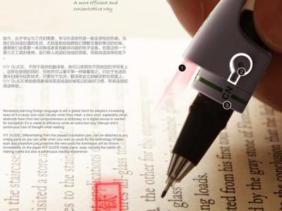 这是一个独特的翻译工具,可以套在钢笔或铅笔上。它运用了先进的激光扫描和投影技术,只要划下生词,翻译就会立即投影到生词上方。它通过USB接口充电,方便实用。