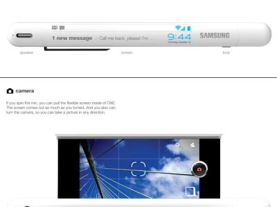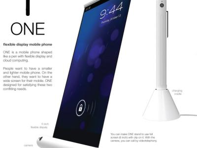 这是一款外观酷似一支白色钢笔的智能手机,采用了柔性显示屏,平时收缩在手机内部,使用时把屏幕拉出来即可。手机的一侧还有一个小型触摸屏,用于操控手机,并可显示时间、短信、电量等信息。