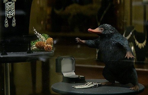《神奇动物在哪里》影片中,最抢镜的动物莫过于爱偷金银财宝的“嗅嗅”了,这只披着黑色皮毛的“小偷”,看到闪闪发光的东西就无法自控,全都要偷走放进自己肚子前的口袋里,被逮到就一脸无辜地卖萌。