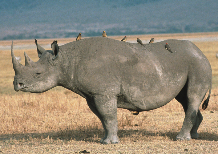 犀牛也是一种现存的古老生物,早在3400万年前,犀牛就已经出现在地球上了。现存的白犀牛是仅次于象的第二大陆生动物。犀牛虽然体型笨重,但能以相当快的速度行走或奔跑。非洲黑犀在短距离内能达到每小时45公里的速度。犀牛多夜间活动,独居或结成小群。生活区域从不脱离水源,食性因种类而异,以草类为主,或以树叶、嫩枝、野果、地衣等为食物。母兽妊娠期18-19个月。寿命30-50年。