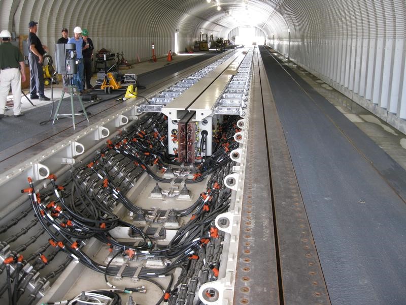 美国电磁弹射器科研攻关始于20世纪80年代,1988年完成小比例模型研制,1999年完成原理样机研制,评估其功率密度等关键参数后,美国海军决定“福特”级航母采用电磁弹射器。2003年完成半长样机研制与演示验证,2004年开始全长样机研制及试验。2009年6月,通用原子公司获得电磁弹射器生产合同,为“福特”号制造4部电磁弹射器。