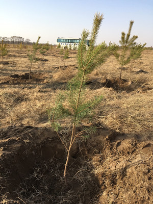 聪明如你,学姐此行的目的大概已经被猜到了吧。是的,学姐种树去了!种树的地方在浑善达克沙地南缘,种的这棵树学名叫做:樟子松。有图为证: