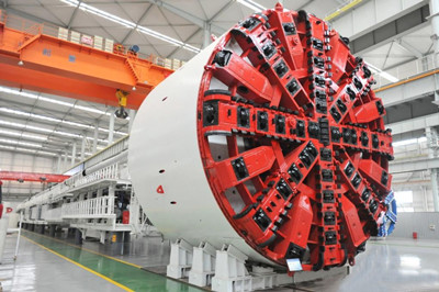 盾构机的基本原理是盾体沿着线路方向,利用旋转刀盘上的刀具对岩土进行挤压、破碎或切割向前掘进;盾体对挖掘出的还未衬砌的隧洞起临时支撑的作用,承受周围土层的压力或地下水压,并将地下水挡在外面。切削下来的碴土由排土机构运至地面,同时,盾构机每掘进一环的距离,管片拼装机就准确拼装衬砌管片,使隧道—次成型。