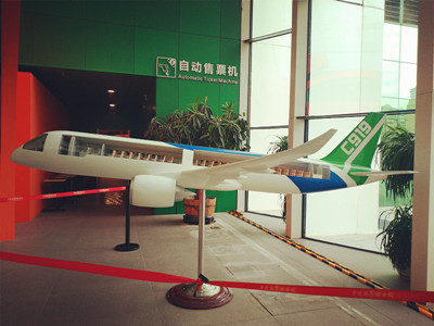 本次展览分为序厅、主体部分、尾声三个区域,其中主体部分包含四个版块:(1)距离·联通(2)领域·拓展(3)世界·认知(4)生活·提升。展厅门前C919大飞机的模型就是最好的地标没错了。
