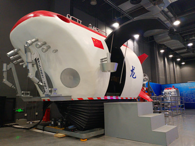 继续前进,一个圆滚滚的萌物进入视线,它的名字叫做:深海勇士,从名字就可以看出这是一件用于海洋科研的装置,是我国第二台深海载人潜水器,它的设计最大下潜深度为4500米,基本覆盖中国主要海域及国际海域资源可开发的深度。别看它憨态可掬,可有着一身的本领呢:(1)采用锂电池取代了原先的银锌电池,电池可用次数从50次增加到500次,使用寿命长达5年左右。同时,深海锂电池还颠覆了世界深潜界的一个概念——无动力下潜、无动力上浮。这两个过程原来不用电,但耗时较长;使用锂电池后,潜水器可借助电力快速上浮和下潜,增加在深海作业的时间。(2)可从海底实时传输图像(数字信号)。(3)“深海勇士”号的关键部件国产化率达91.3%,主要部件国产化率达86.4%。
