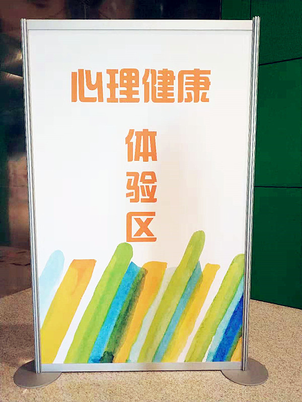 至此,心理健康体验区暂告一段落,可是活动还远没有结束,它隔壁的心理服务体验区更加安静和私密,它分为心理咨询、沙盘、脑认知训练3个功能区,有专业机构的心理咨询师为体验者提供一般心理问题咨询和疏导帮助。
