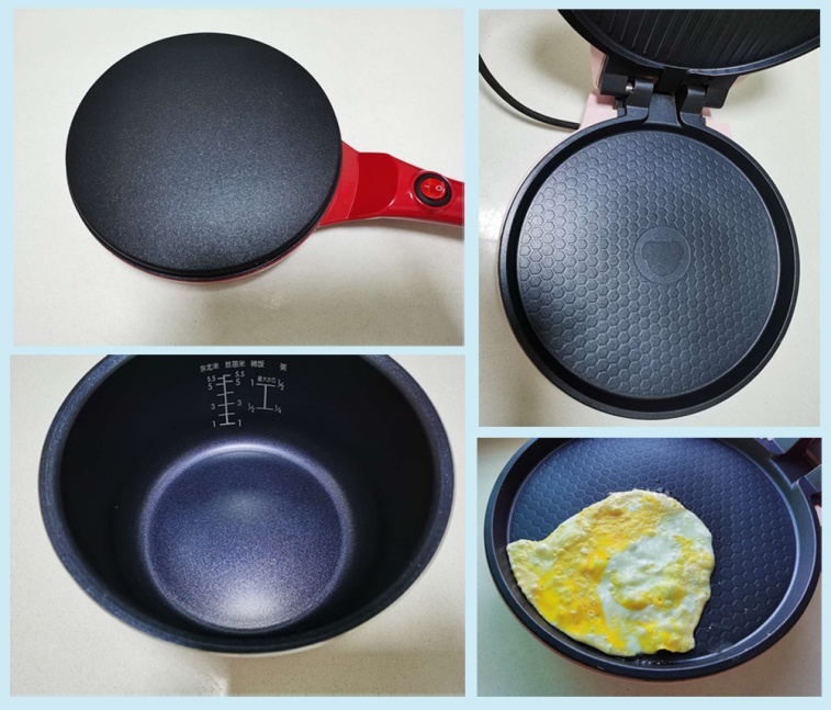 市面上常见的不粘锅涂层主要有两类:一类是含氟聚合物,以聚四氟乙烯(又称“特氟龙”)为代表;另一类是硅氧聚合物,以陶瓷、陶晶涂层为代表。当然,不粘锅并不能做到100%不粘。烹饪淀粉和蛋白质含量较高的食物,也可能出现粘锅情况。如果产品本身不合格或出现了涂层受损情况,也会粘锅。
