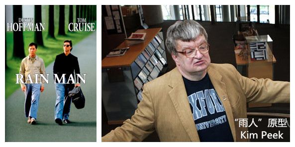 其实,“雨人”是一个具有特别意义的名词——指那种具有某种特殊才能,但日常生活存在障碍的人。他们脑部存在着不明原因的发育异常,往往在儿童时期患有自闭症。他们也被称为“星星的孩子”,只生活在自己的空间里,像个天外来客,和这个世界格格不入。有研究指出,牛顿、爱因斯坦、比尔·盖茨这些天才都曾有轻度自闭症。