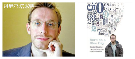 丹尼尔·塔米特(Daniel Tammet)1979年出生于英国。他是一位有学者综合症(Savant syndrome)的自闭患者,也是一位数学和语言天才,拥有超乎常人的记忆力和计算能力。他精通11国语言,在一周之内学会了冰岛语。能记住圆周率π小数点后22,513数字,至今保持着这项记录。他的作品《星期三是蓝色的》被译成18国语言,畅销全球。