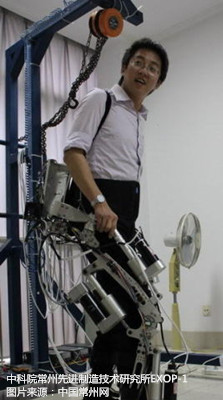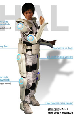 一是利用机械外骨骼上的各种传感器感应肢体压力变化、人体姿态变化或者皮肤表面的电信号等,解读人的运动意图,进而控制外骨骼与肢体完成一致动作。日本科技公司“赛百达因”(Cyberdyne)研制的HAL-5可穿戴机器人以及我国中科院常州先进制造技术研究所的EXOP-1外骨骼机器人属于此类。